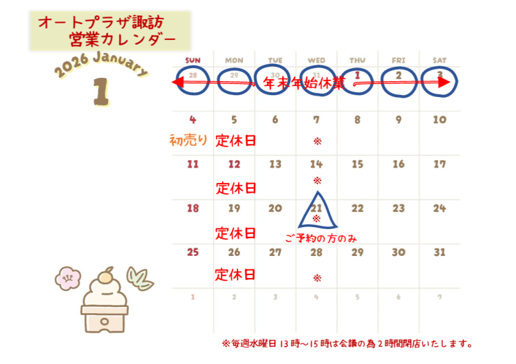 年末年始は12月27日(土)15時~1月3日(土)までお休みを頂戴いたします。